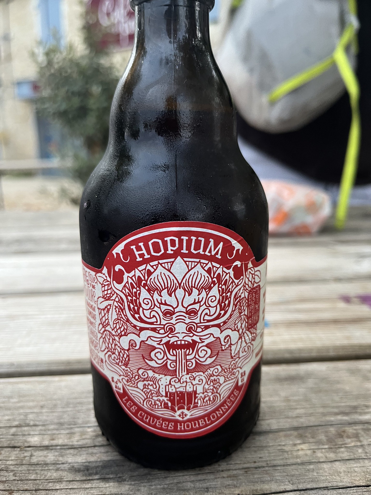 We checked into our gîte by phone. We never even saw the landlord. After the usual pilgrim ablutions, we headed out to see if we could find someplace for dinner. The options in the village were limited, so we ended up going to a local burger-and-pizza joint. I had a pretty tasty burger, although I found it interesting that all the burgers there came with mozzarella. And of course, I tried the local beer, which I found surprisingly refreshing and tasty. Always try the local. You might be surprised.