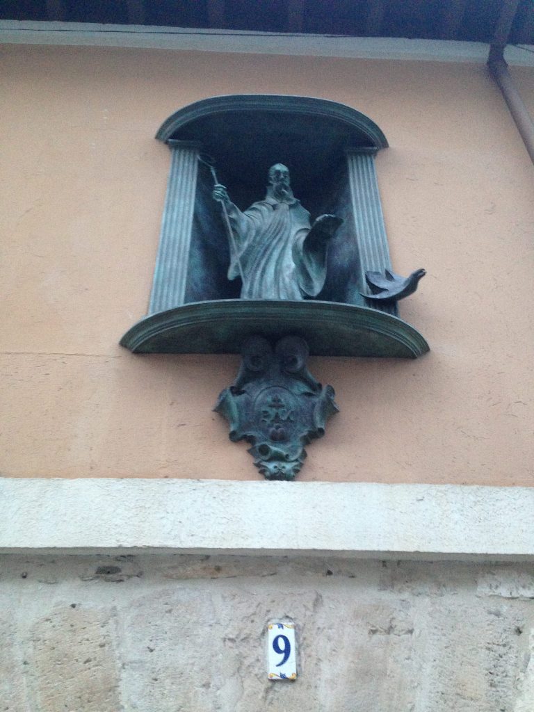 Just a reminder as we walk through the streets of Burgos seeking breakfast that parts of Spain are still extremely Catholic. This niche statue of Saint Benedict is above a doorway with a simple plaque identifying the building as a monastery of Benedictine nuns.