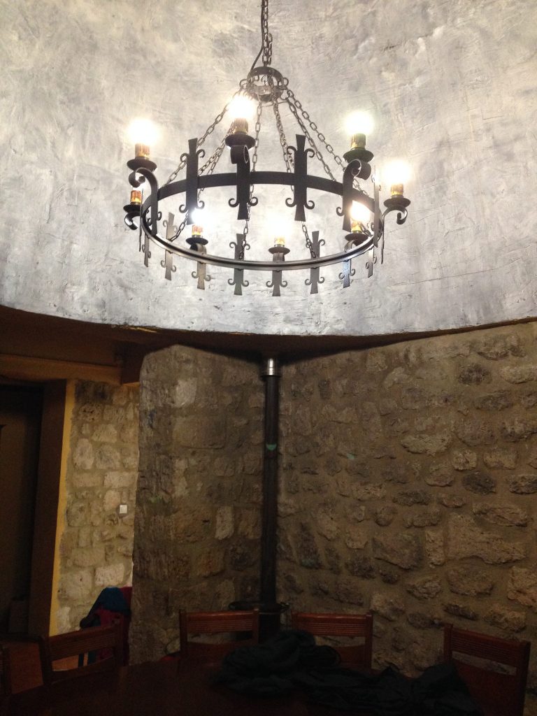 This is the lighting fixture in the dome of the albergue at San Bol. There was just something that struck me as oddly elegant about the chandelier in this refurbished bodega in the middle of nowhere.