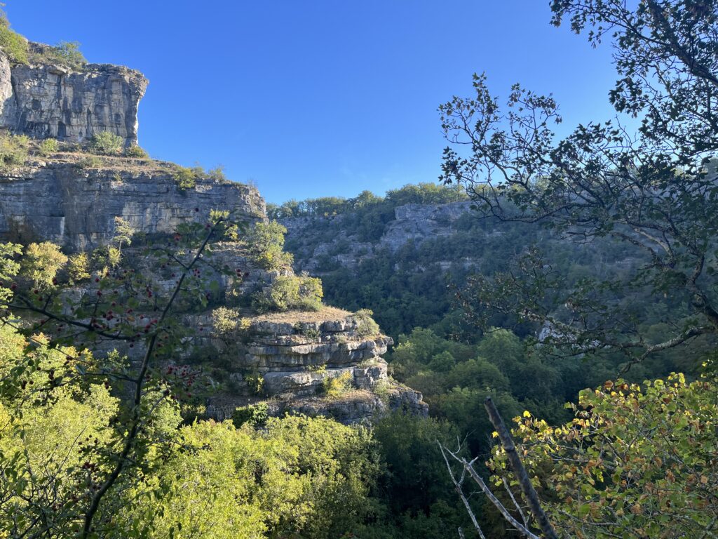 Once through the ruins of the Moulin de Tournefeuille, you can see the shape of the Camino canyon route. This is the Alzou Gorge, carved out over long millennia by the river of the same name. The canyon is so narrow and deep that I completely lost my GPS service through most of it. This is one of the most popular hikes within the Causses du Quercy Regional Natural Park, and I can certainly see why; this is absolutely beautiful country.