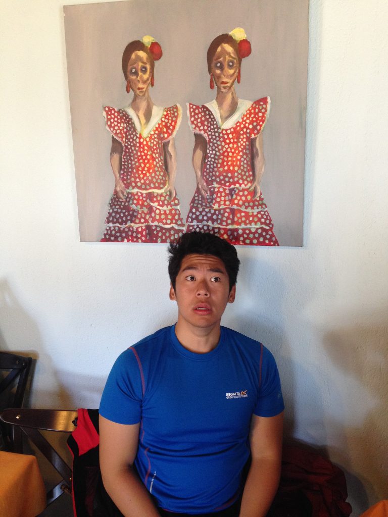 The artwork in the bar where we had lunch in San Nicolás del Real Camino was… disturbing. Here is Peregrino Brian from Evergreen being… disturbed. I’m somewhat shocked that I only took a photo of this particular painting, as I’m sure I remember many others just as odd.