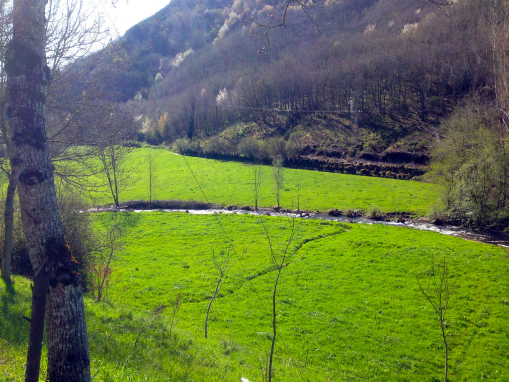 As we continue our climb up into the Cantabrian Mountains and, eventually, Galicia, the Camino follows a country road towards the village of La Faba. To our left, the land drops away into an idyllic valley, complete with meadowland, winding river, and scattered cattle. Despite the heat of the day and the climb, it was a little slice of heaven.