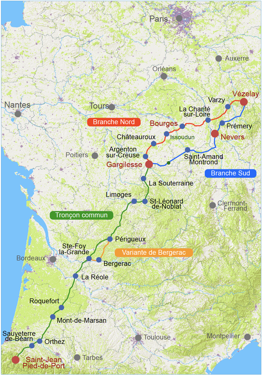 Francine had wanted us to walk the Voie de Vézelay – also known by its Latin designationVia Lemovicensis – all the way from Vézelay in France, through Nevers (where her Confirmation saint, Bernadette, is entombed), past Saint-Jean and the Pyrenees, to Santiago de Compostela in Spain.