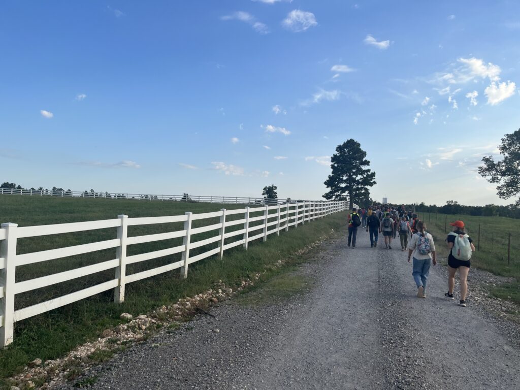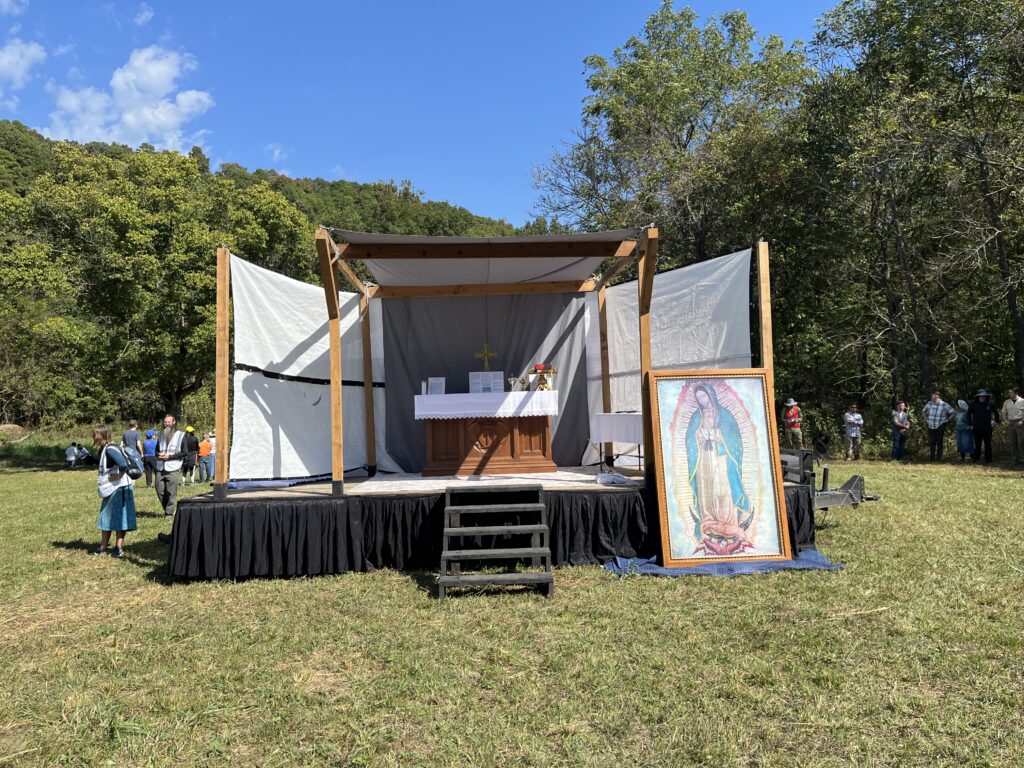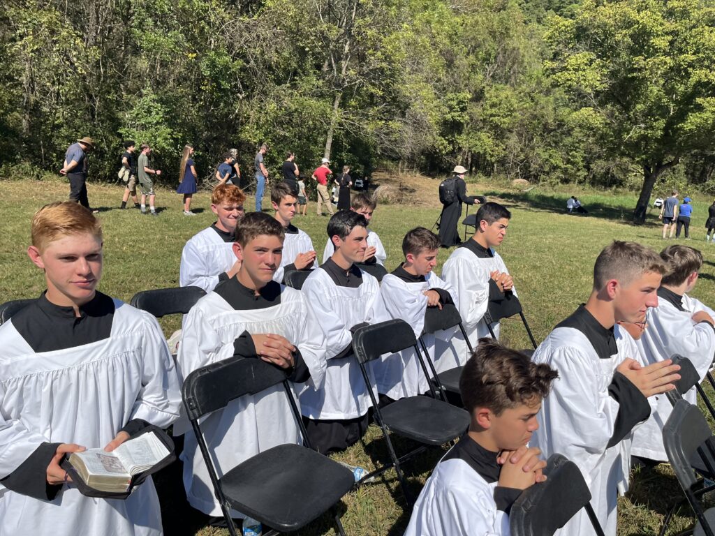 By 10:30 AM, we were back to road walking. By about a quarter to noon, we arrived in a large open field for Mass. It was so brutally hot that the servers carried umbrellas over the priests serving communion.